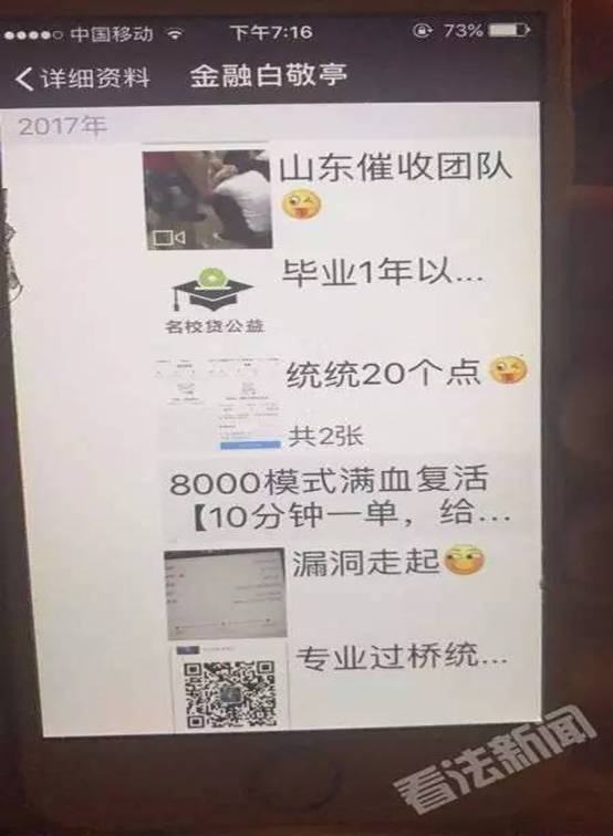 各种威胁手段也是不良校园贷平台的常用手法。范泽一的手机里就有多条威胁性质的信息。而在另一段由讨债人发送标题为“山东催收团队”的视频中,多名赤裸着上身的男子正在殴打几名抱头蹲在地上的青年。