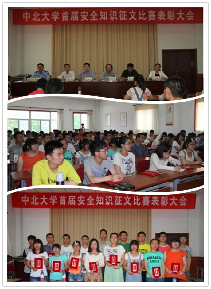 下午,中北大学首届安全知识征文比赛表彰大会在科艺苑学术报告厅召开。校党委宣传部部长薛实军、安全保卫部部长杨正民、安全保卫部副部长李斌、校团委副书记魏翀、安全保卫部教育科科长郭薇薇出席了大会,并为获奖者颁奖。表彰大会由安全保卫部副部长吴耀金主持。