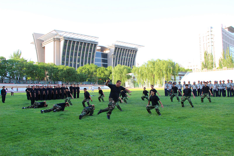 由校园110警卫队员60 人组成的演练分队,分别按照队列、擒拿制服歹徒、擒敌拳、倒功的顺序一一进行了演练。演练结束后,太原市直属分局副局长尹群做了重要讲话,他指出在国内反恐形势严峻、恐怖就在身边的情况下,中北大学安全保卫部能够紧抓形势进行反恐维稳实战特训演练,非常及时和必要,这在山西高校的第一家。