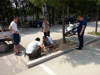 为维护我校校园交通安全,适应我校交通安全的现实情况,安全保卫处交通科全体人员在杨正民处长的带领下,从六月初开始,在全校开始选点工作,分别针对标示不清、缺乏标志,需要减速带等情况,经过现场勘查,分析确定40个点位需要增加和更换交通标志、标识;学校主干道分道线需要换新;主要部位的车位需要更新。为了使交通标志做到合理合法,六月底,又邀请太原市尖草坪区交警支队张林升副大队长、李晓华中队长来我校做指导工作,在专家的帮助下,经过论证,最终确定更新43个点位交通标志、标识;9条道路的分道线;7处消防网状线;362个车位;9条减速带。并对每个点位需要的材料进行详细的登记造表。七月初开始施工,到目前为止,已全部完工。此次完善设置我校交通设施,共增加交通标志、标识60个,43处;更新分道线3930米;更新车位362个;修补减速带76米;更新消防网状线230平米。交通科为了节省开支,自力更生,不多浪费每一分钱,特从设备公司租来专用设备,自己购买原材料,组织交通科人员和保安人员利用工作之余,加班加点在半个月的时间内圆满完成了所有安装任务,为学校节省了3万余元。